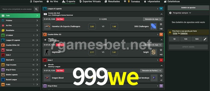 A aposta 999we oferece aos jogadores a experiência mais conveniente de apostas em eSports!